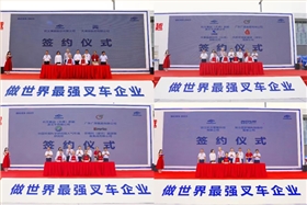 高端的產品、卓越的品質、強大的性能獲得了廣大客戶的認可,各方合作伙伴積極于杭叉集團進行戰略合作簽約,成就價值,共贏未來。杭叉集團和天津港股份有限公司簽訂港口用滾裝電動叉車設計開發及應用技術研究項目開發協議,致力于推動港口滾裝船設備作業環境的應用與推廣。杭叉集團和廣東廣晟氫能有限公司、中集氫能科技(北京)有限公司、天養環保新能源(深圳)有限公司簽訂氫燃料電池正面吊銷售協議及氫燃料電池工業車輛戰略合作協議,積極推動氫燃料電池工業車輛的推廣,促進我國“綠色港口”的建設,積極開展氫燃料電池工業車輛和氫氣供應設備的研發和迭代更新工作,聯合制定符合氫燃料電池工業車輛市場化銷售和運營的商業模式。杭叉全球首臺45噸燃料電池正面吊樣機現場就被預定,開展當天實現簽單總額達上千萬元。杭叉集團和中國環境科學研究院大氣環境研究所、安瑞科(廊坊)能源裝備集成有限公司、廣東廣晟氫能有限公司簽訂氫燃料電池工業車輛碳核算合作項目,將為進一步完善我國碳排放交易機制提供有益探索,推動我國工業車輛向綠色、低碳、環保方向發展。杭叉智能科技和湖北普羅格科技簽訂智能物流解決方案戰略合作項目,雙方面向智慧園區、智慧倉儲、智慧工廠、智慧門店、智慧醫療等應用場景,提供物流集成與總包、物流系統集成、倉儲物流自動化設備、精益生產物流及供應鏈等企業數智化轉型一站式解決方案。